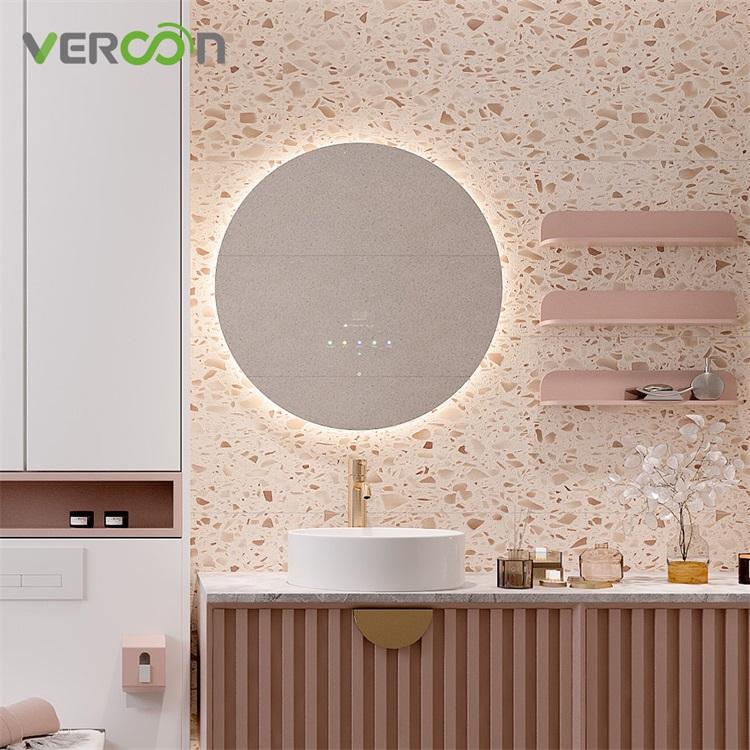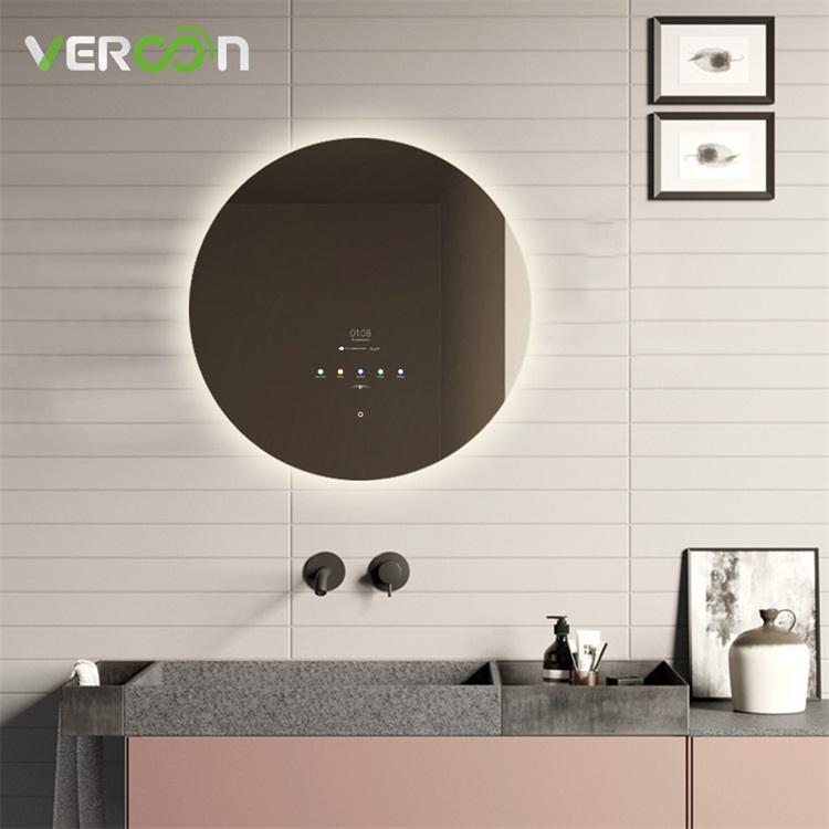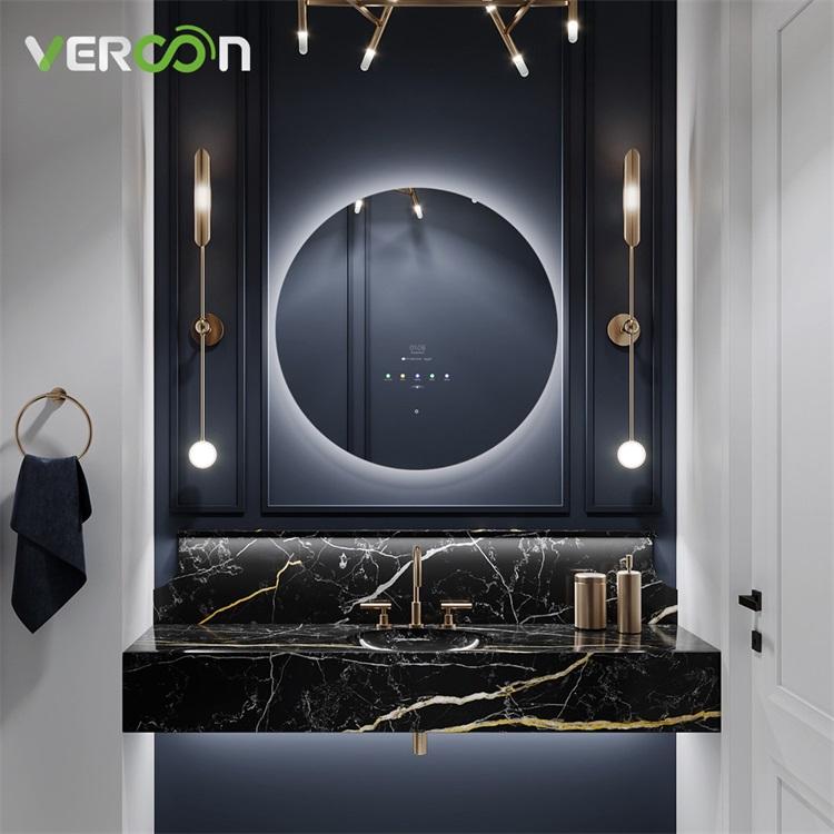 Gương phòng tắm thông minh hình tròn gắn tường cảm ứng bán buôn tại nhà máy với đèn LED thông minh có 10 điểm cảm ứng.